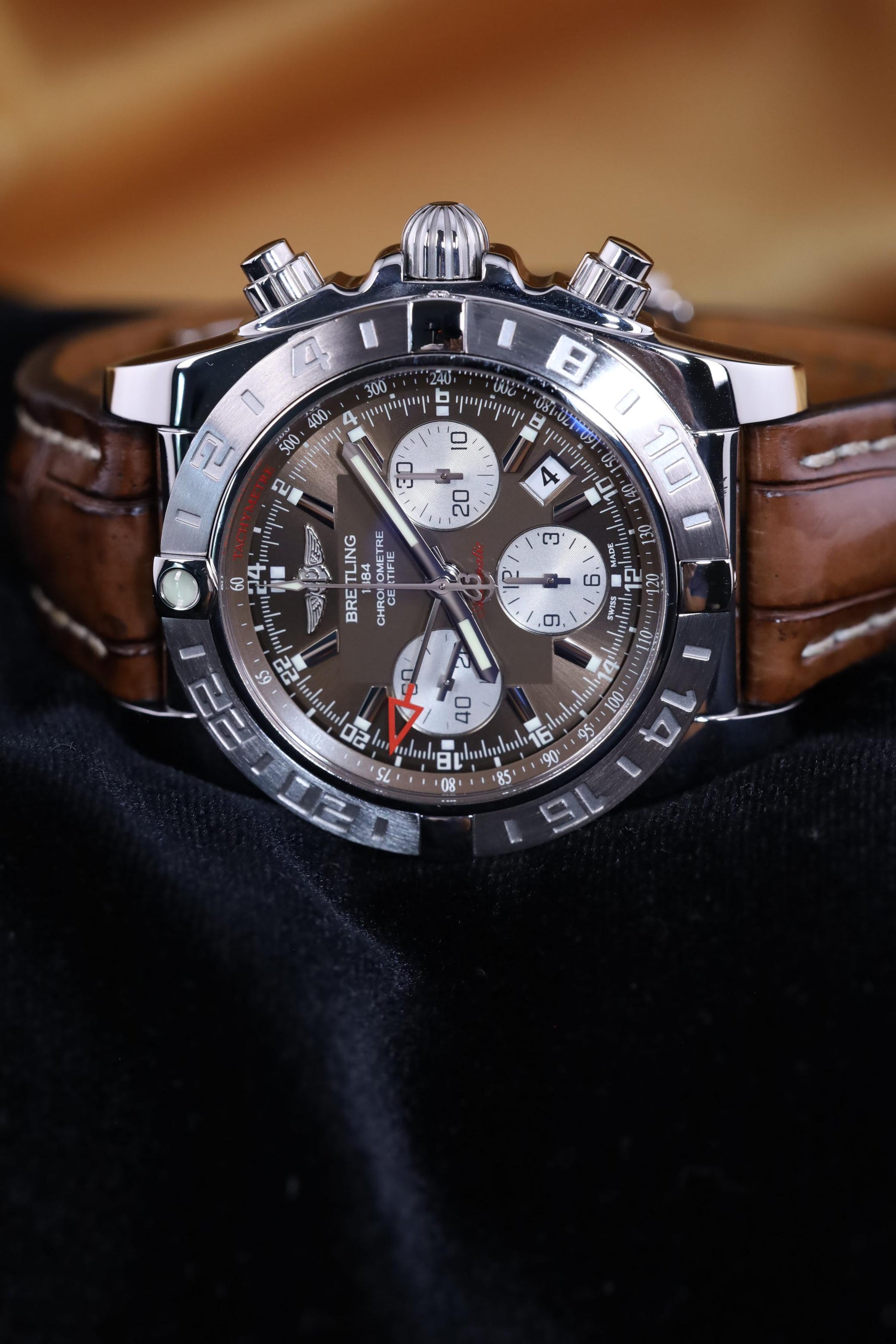 Breitling Chronometre GMT Chronograph - Copper Dial - AB0420 - 2012 - Mint Pre-owned - Brown Leather Strap