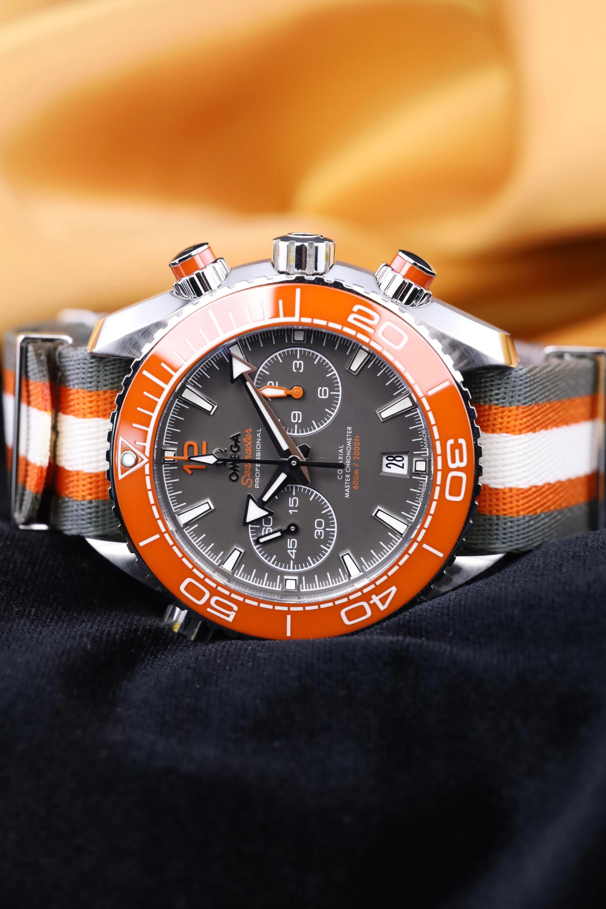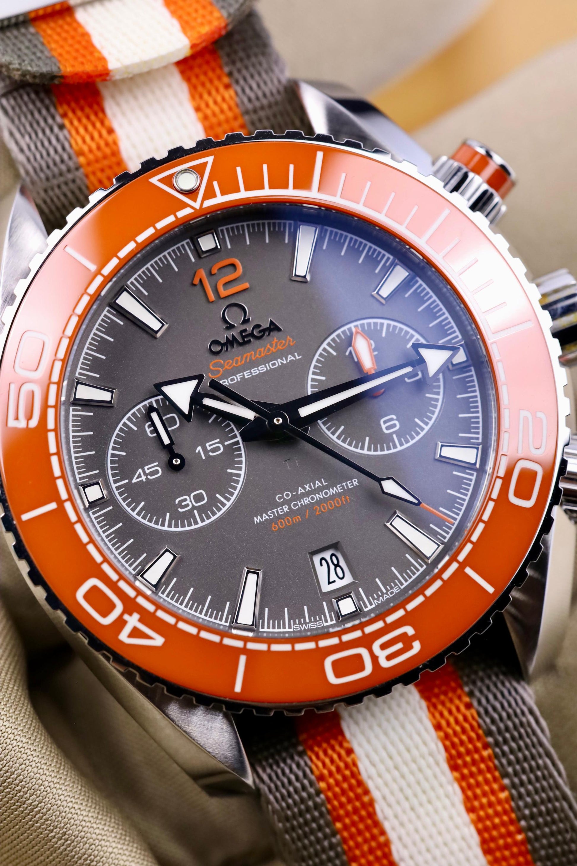 Omega Seamaster Planet Ocean 600M Omega Co-Axial Master Chronometer Chronograph - 45.5 mm Steel Case - Ceramised Titanium Dial - Grey And White Polyamide Nato Strap - 215.32.46.51.99.001 - 2020